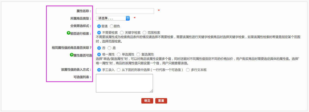 手工录入:可以手工输入商品的属性,如颜色、尺寸。