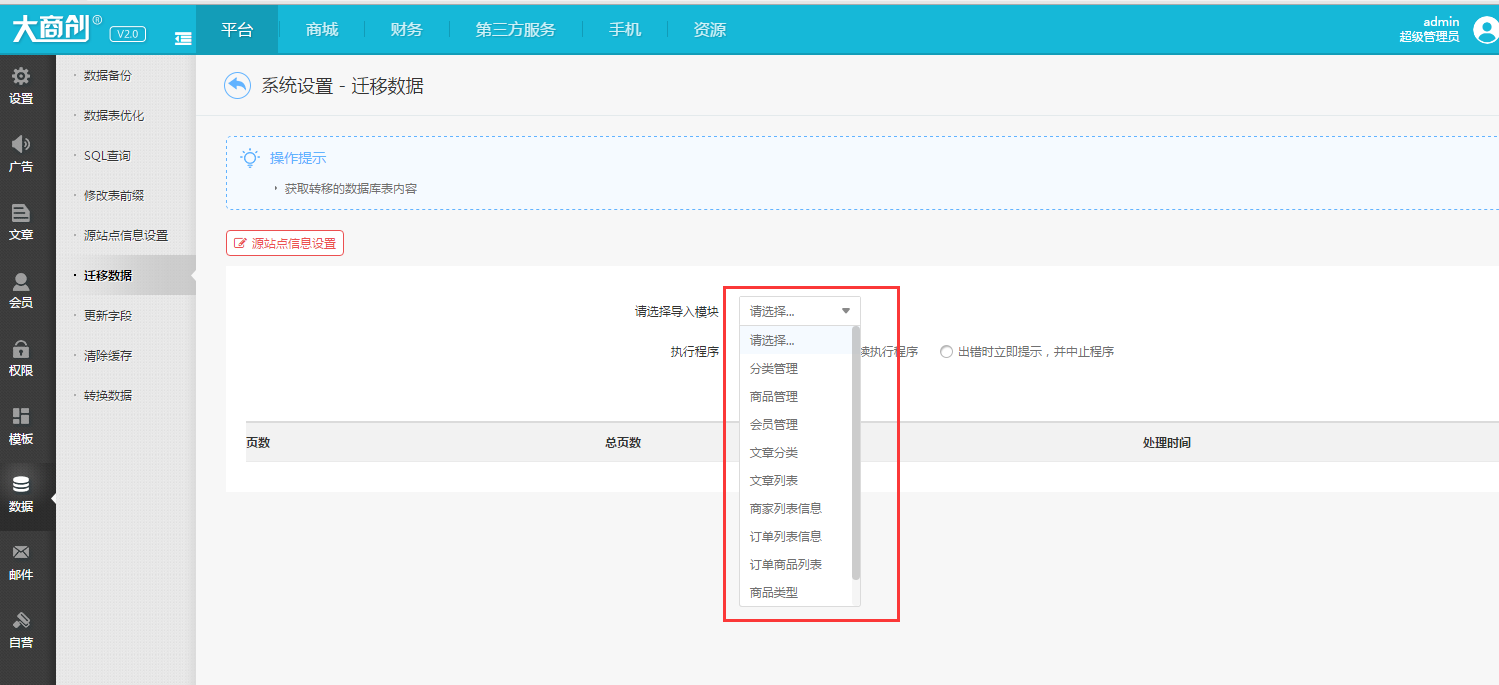 先配置原站点信息,打开后台平台--数据--原站点信息设置